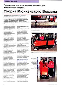 Только в чистом помещении вокзала пассажиры чувствуют себя уютно и безопасно. Но наводить чистоту часто приходится в условиях непрерывного потока людей, не нарушая при этом рабочею ритма вокзала. Учитывая эти требования специальная концепция уборочной техники и мощные машины позволяют непрерывно заботиться о чистоте на Главном Мюнхенском вокзале.